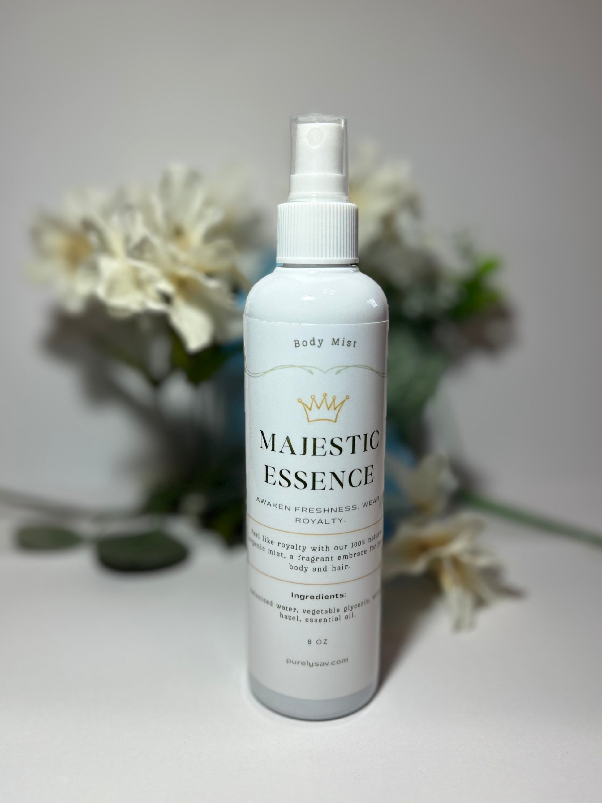 Experience the enchanting allure of our Majestic Essence body mist! This refreshing spray for both body and hair combines sweet floral notes. Crafted with all-natural ingredients, it offers a delightful aroma that lingers, bringing a touch of vibrant elegance to your day.